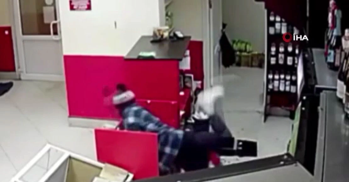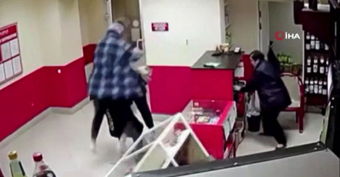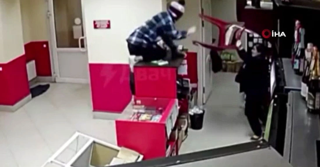 Kasiyer eline aldığı sert bir cisimle soyguncuya vurmak isterken, soyguncu kasiyerin yanına atladı bu kez de kasiyer, sandalyeyle soyguncuya vurdu. Sendeleyen soyguncu, sandalyeyi kasiyerden alarak fırlattı.
