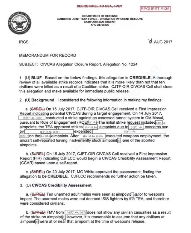 ABD tarafından gerçekleştirilen hava saldırılarında çok fazla istihbarat zafiyeti yaşandığını ve hedeflerin imha edilemediği belirtildi. Bu istihbarat zayıflığından kaynaklı operasyonlarda, çok sayıda sivilin öldürüldüğü bilgisi de yer aldı. Resmi rakamlara göre, bu operasyonlarda bin 500'e yakın sivil hayatını kaybetti. Ancak NYT'ın incelediği belgelere göre, sivil ölümler resmi rakamların çok üzerinde.