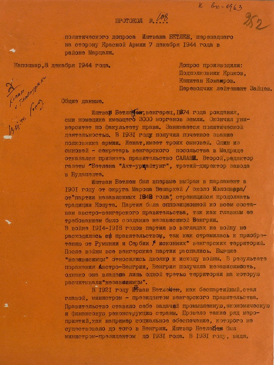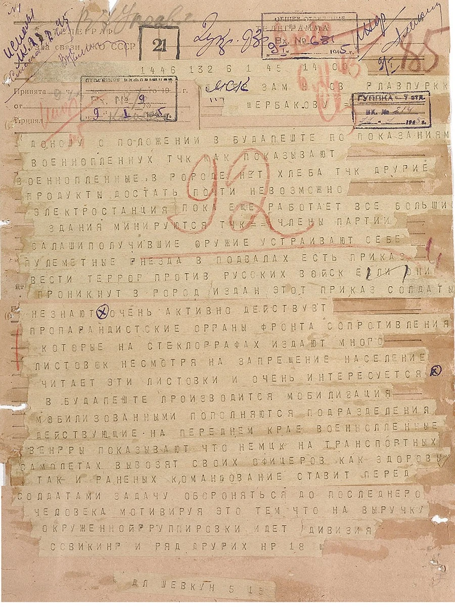 Yayınlanan belgelerde, eski Macaristan Bakanı ve Devlet Başkanı Istvan Betlen’in 7 Aralık 1944 tarihinde Kızıl Ordu tarafına geçtiğine, işçilerin Naziler tarafından kaçıldığı ve yerel halkla alay edildiğine, Kızıl Ordu’nun gelince hayat şartlarının düzeleceğine, ordu düzenine ve daha birçok detaya ilişkin ayrıntılar bulmak mümkün.