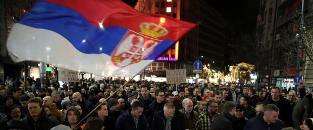 Birçok muhalefet liderinin de katılarak destek verdiği protesto nedeniyle, başkent Belgrad'daki çok sayıda cadde de trafiğe kapatıldı.