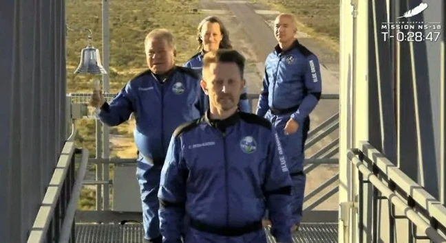 Shatner'in da aralarında bulunduğu 4 kişilik ekibin uzay yolculuğu 10 dakika sürdü. Ekip yolculukta 106 kilometre yüksekliğe çıktı. Kanadalı aktör, fırlatma öncesi yapılan son röportajında dünyayı yeni bir perspektiften görmeyi dört gözle beklediğini söylemişti.