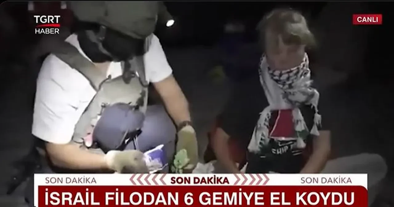 İsrail Dışişleri Bakanlığı’nın sosyal medya hesabından yapılan açıklamada, Küresel Sumud Filosu'ndaki bazı gemilerin ele geçirdiği ve yolcularının bir İsrail limanına götürüldüğü bildirildi. Bakanlık, ele geçirdiği gemideki filo katılımcısı iklim aktivisti Greta Thunberg'ın İsrail askerinin yanında yer aldığı görüntüleri paylaştı.