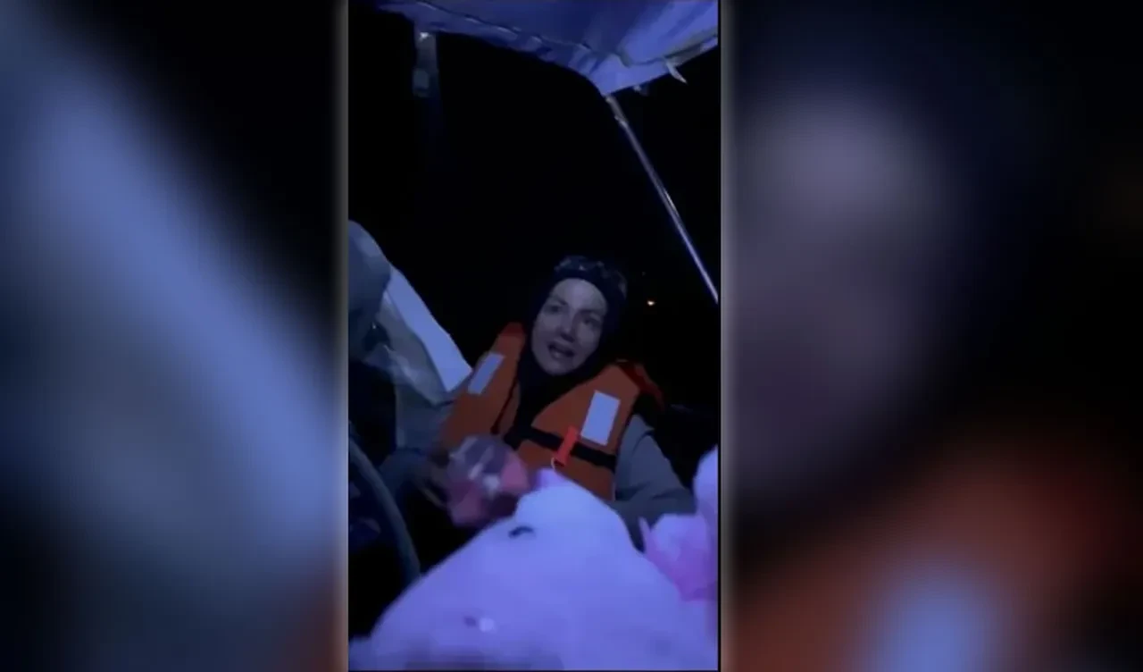 İsrail deniz kuvvetlerinin Gazze'ye doğru ablukayı kırmak ve insani yardım ulaştırmak için yelken açan Küresel Sumud Filosu gemilerine saldırmaya devam ettiği sırada, Küresel Sumud Filosu Fair Lady gemisindeki aktivistlerin silahsız olduklarını kanıtlamak için ellerini kaldırdıkları görülüyor.