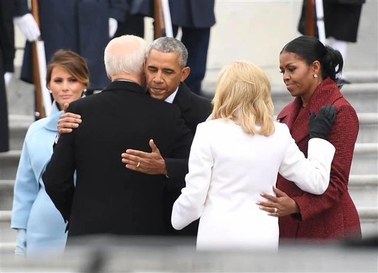 Barack Obama ve Michelle Obama'yı uğurlayanlar arasında, Trump çiftinin yanı sıra eski Başkan Yardımcısı Joe Biden ve eşi Jill Biden ile yeni Başkan Yardımcısı Mike Pence ve eşi Karen Pence de vardı.