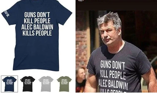 Kurusıkı diye verilen silahın gerçek mermi dolu çıkması sonucu görüntü yönetmeninin ölümüne, yönetmenin ise yaralanmasına neden olan Alec Baldwin, suçlu bulunmamasına rağmen Trump Jr. ''Silahlar insanları öldürmez; Alec Baldwin insanları öldürür'' yazılı tişört giydi. Bununla da sınırlı kalmayan Trump Jr. sahip olduğu çevrimiçi mağazada bu tişörtü satışa sundu.