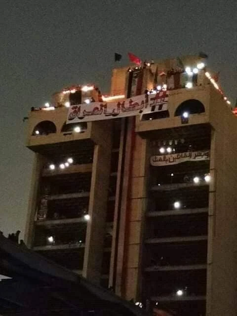 Hem gösterilerin merkezi Tahrir Meydanı, hem de Yeşil Bölge’ye giden köprüyü gören ve protestocular tarafından bayrak ve afişlerle donatılan binada bulunan eylemciler binadan çektikleri görüntü ve fotoğrafları da sosyal medyadan yayınlamaya devam ediyorlar.