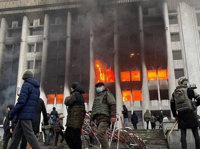 Kazakistan’da doğalgaz zamlarına tepki olarak başlayan protestolar isyana dönüştü. İş yerleri, resmi ve özel kurumlar yağmalanırken sokaklar savaş alanında döndü. Zamlar geri çekildi, hükümet istifa etti. Ancak buna rağmen protestocular, eylemlere devam edince OHAL ilan edildi, Cumhurbaşkanı Kasım Cömert Tokayev isyanı bastırmak için Kolektif Güvenlik Antlaşması Örgütü (KGAÖ)’den yardım istedi. Dünyanın kilitlendiği Kazakistan’a KGAÖ üyesi Rusya, Ermenistan, Tacikistan, Kırgızistan ve Belarus asker gönderdi. Aynı zamanda Türk Devletleri Teşkilatı da yardıma hazır olduklarını açıkladı. Peki Kazakistan’da neler oluyor ve şiddet olaylarının arkasında kimler var? TGRT Haber’de Bozok Üniversitesi Öğretim Üyesi Prof. Dr. Kürşat Zorlu ile Uluslararası İlişkiler Uzmanı Doç. Dr. Deniz Tansi, Kazakistan’da yaşanan olayların gidişatını, ulusal ve uluslararası yansımalarını açıkladı.