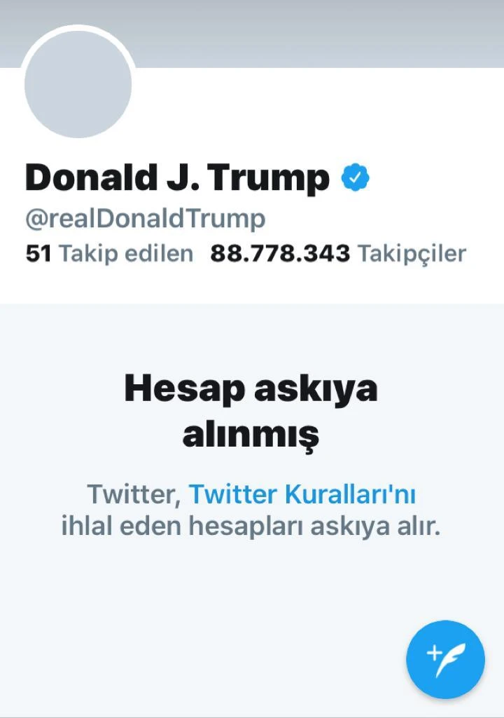 Sosyal medya platformu Twitter, ABD Başkanı Donald Trump'ın hesabını kalıcı olarak askıya aldığını açıkladı.