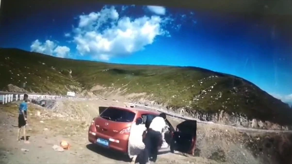 Çin'in Xinjiang'ın Duku Otoyolu'nda bir aile kısa süreli bir mola vererek hayatlarının hatasını yaptılar. Vadi kenarında mola verdikleri esnada manzaranın keyfini çıkarmak için ailenin keyfi felakete dönüştü.