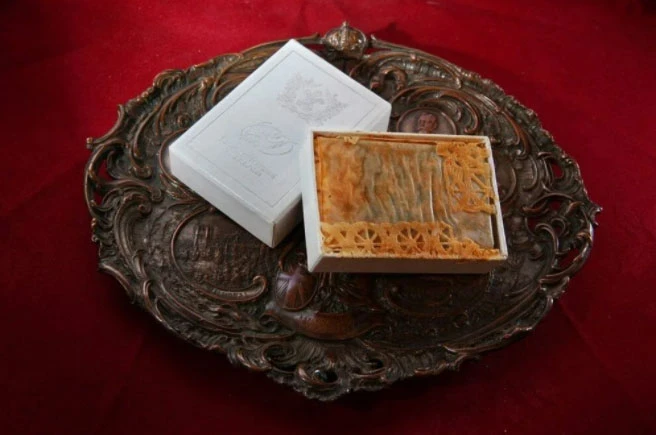 "Bu büyük ve eşsiz kraliyet pastası için teklif vermek isteyen insanların sayısına şaşırdık. Pasta ilk satıldığı zamankiyle tamamen aynı ve iyi durumda görünüyor, ancak onu yememenizi tavsiye ediyoruz.''