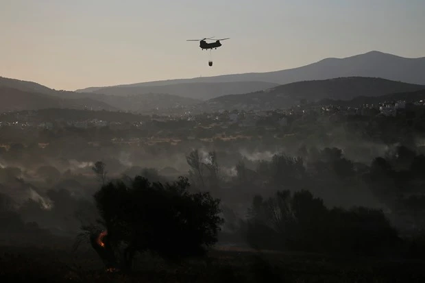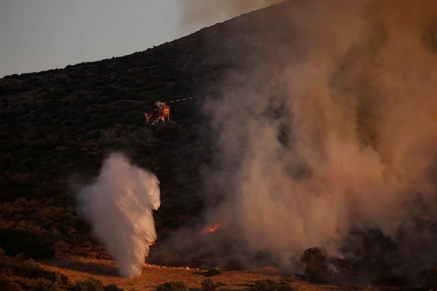 Yunanistan'ın başkenti Atina’nın sayfiye yerlerinden olan Kalivia bölgesinde yangın çıktı. Şiddetli rüzgar nedeniyle hızla büyüyen yangın kırsal bölgede maki bitki örtüsü yakarak, evlerin bulunduğu bölgeye hızla yaklaşıyor. Ulaşılması zor olan bölgede şu anda 80 itfaiyeci, 30 itfaiye aracı, 11 gönüllü aracı ve 14 belediye aracı bulunuyor. Evlerin bulunduğu Saronida bölgesinin Belediye Başkanı K. Sofronis yangının evlere yaklaşmaması için gereken tedbirlerin alındığını, ancak gecenin çok zor olacağını söyledi.