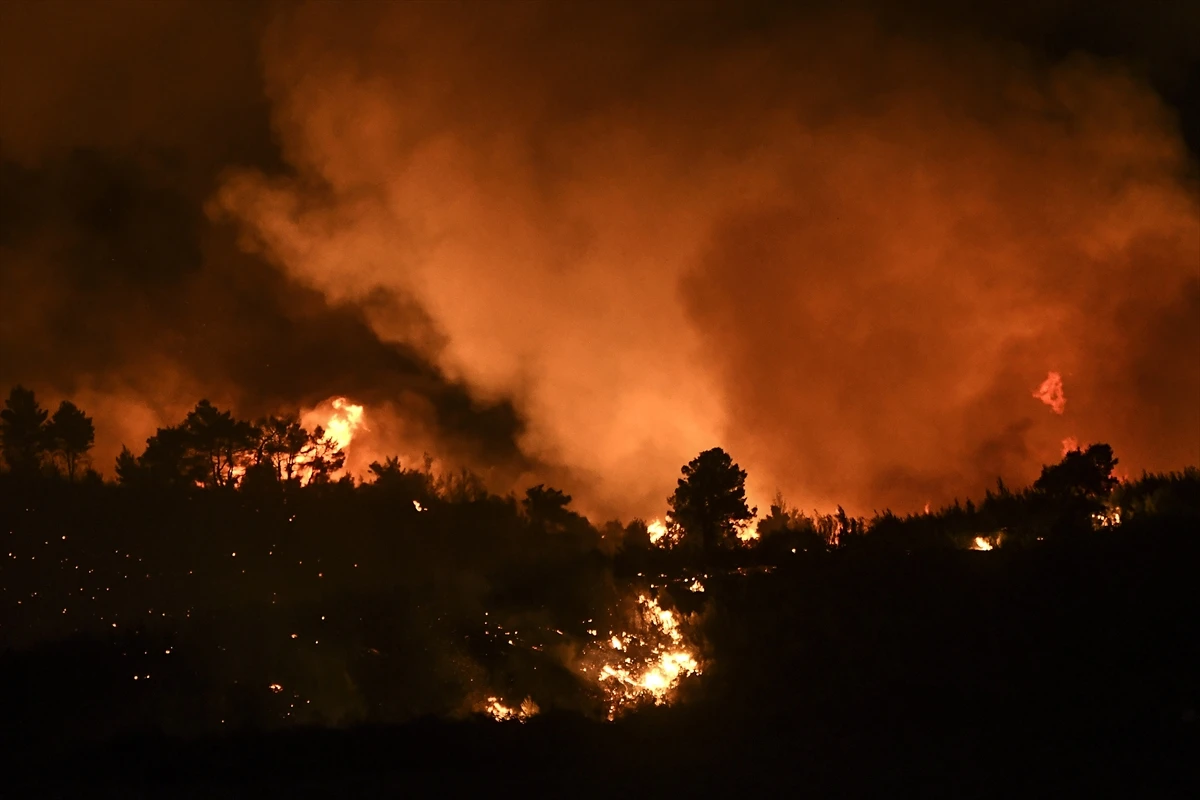 Ada’nın kuzeyindeki Kastri, Artemisio ve Guves yerleşim birimleri çevresinde yoğunlaşan yangınlara havadan ve karadan müdahale edildiği, bölgeye ek itfaiye güçlerinin sevk edildiği ifade edildi.