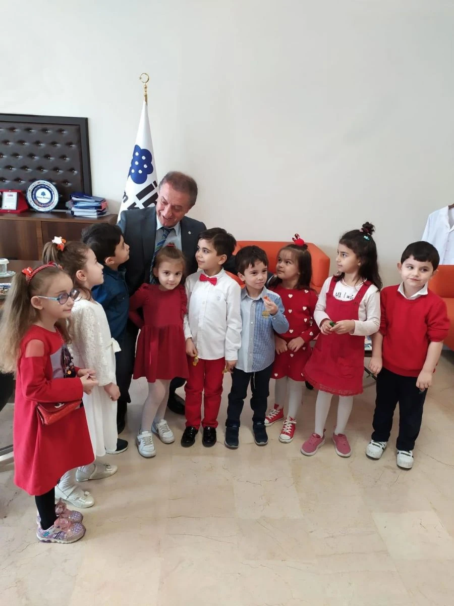 Oldukça neşeli geçen ziyarette Yeltekin minik öğrencilerle tek tek ilgilenerek onlarla sohbet edip çikolata ve şeker ikram etti.