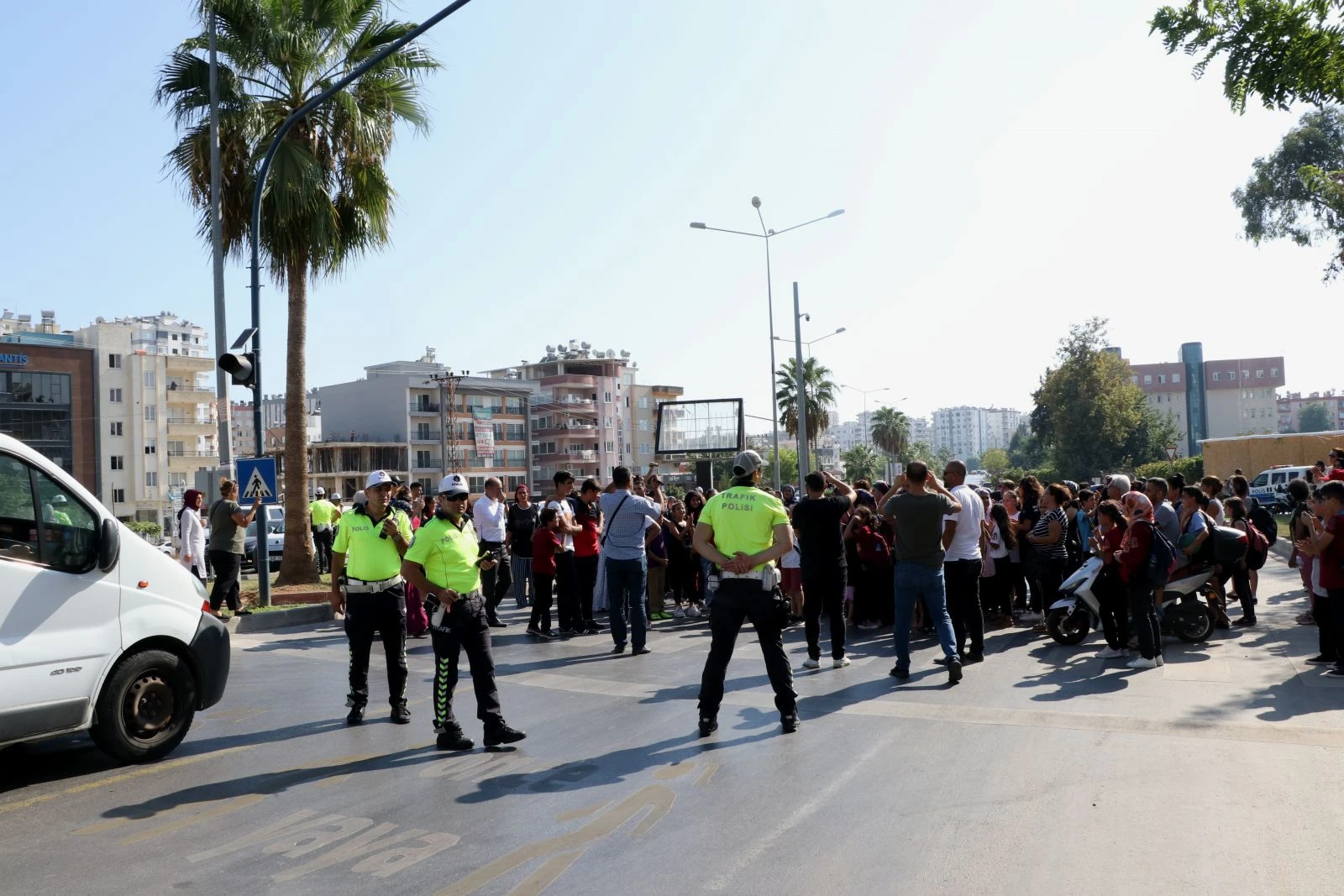 Sloganlar atarak Hüseyin Okan Merzeci Bulvarını trafiğe kapatan velilere, üst geçit taleplerini dile getirdi. Yaklaşık 10 dakika boyunca yolu trafiğe kapatan veliler, ardından polis müdürlerinin kendileriyle konuşmasıyla eylemlerini sonlandırdı. Güvenlik Şube Müdürü ailelerle görüşerek, üst geçitle ilgili taleplerin belediyeler tarafından karşılanabileceğini ancak bundan sonra her gün okul giriş ve çıkışlarında kazanın olduğu bölgede trafik polislerinin görev yapacağını ve çocukları onların kontrollü bir şekilde karşıdan karşıya geçireceğinin sözünü verdi.