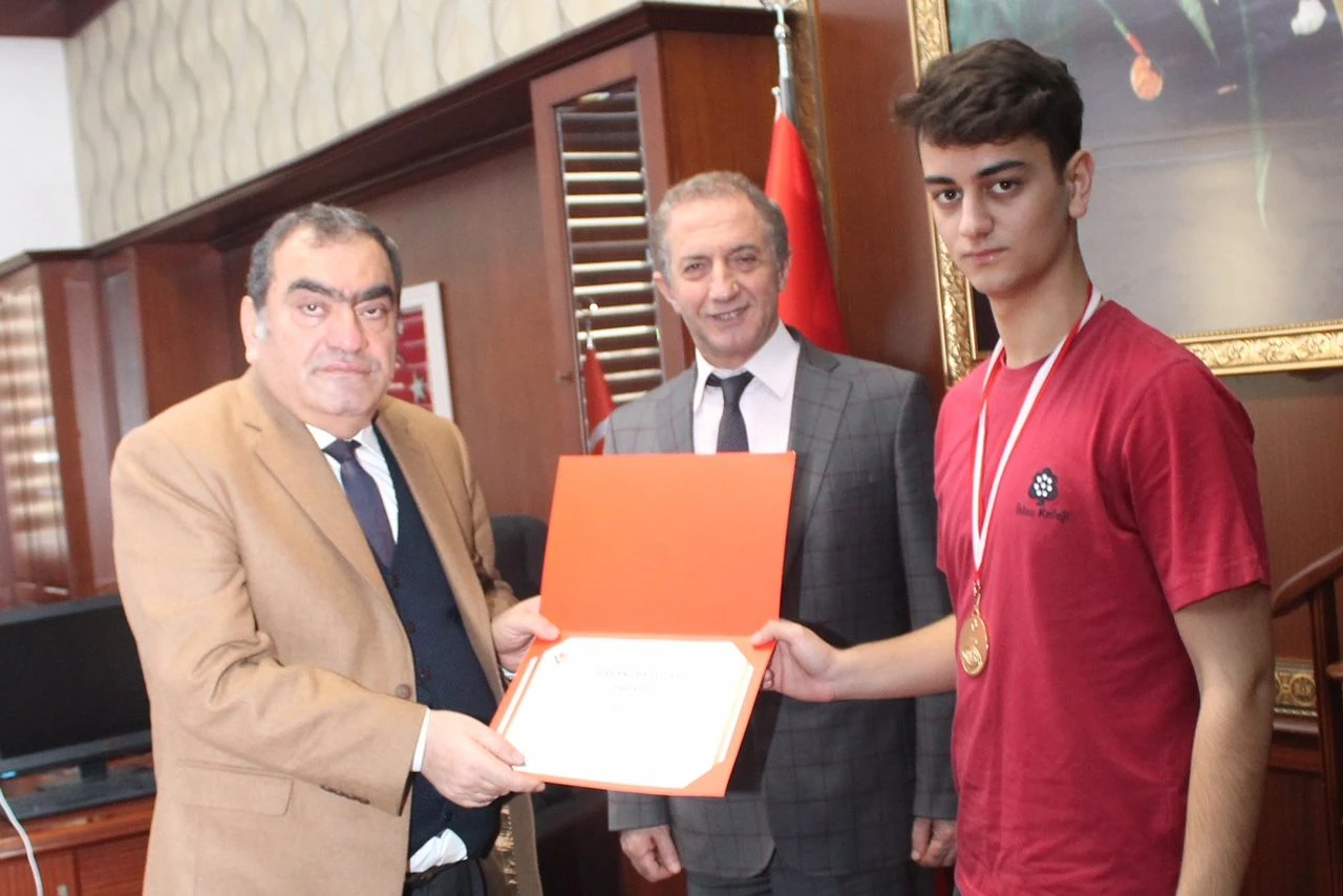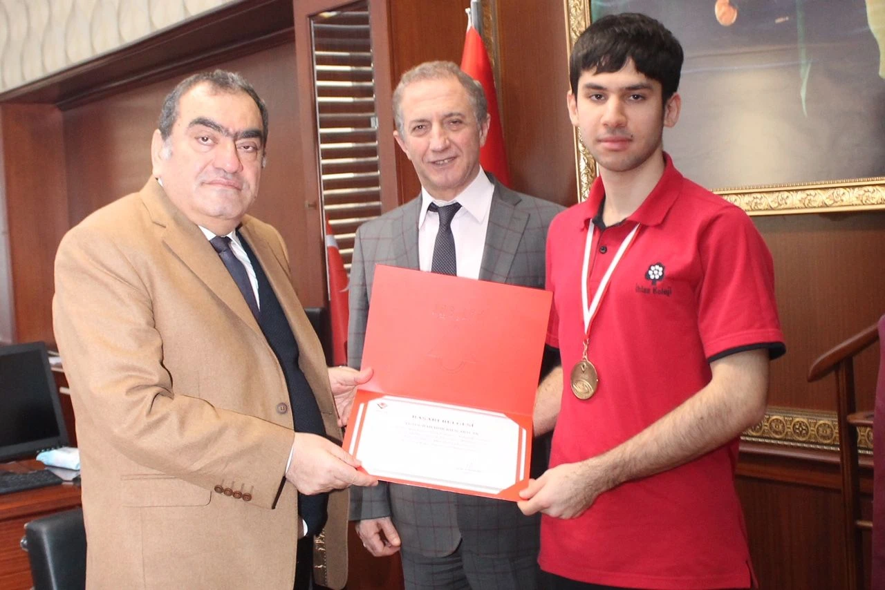 İhlas Kolejinin başarılı gençleri Beylikdüzü Kaymakamı Mehmet Okur’u ziyaret ettikten sonra Beylikdüzü İlçe Milli Eğitim Müdürü Barış Yıldız ile bir araya geldiler. Sıcak ortamda geçen ziyarette İlçe Milli Eğitim Müdürü Barış Yıldız altın madalya alan Kılıç ve Kılıçarslan ile öğretmenleri Merve Davarcı Tekin’i tebrik etti.