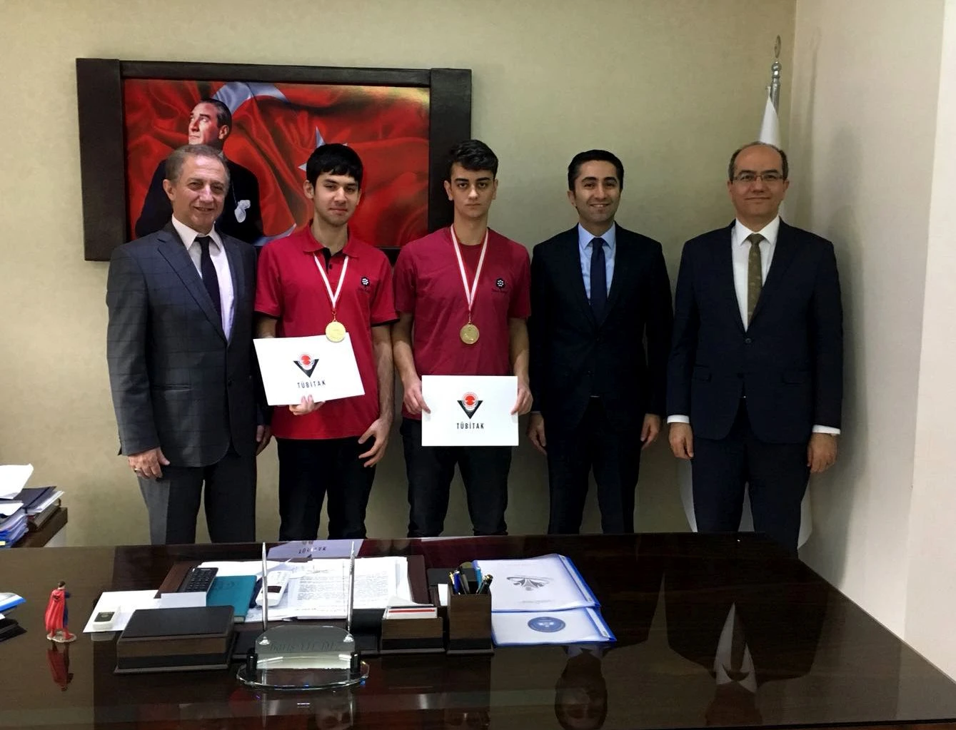 İhlas Eğitim Kurumları Genel Müdürü Bedri Yeltekin, Özel Marmara Evleri İhlas Fen ve Anadolu Lisesi Okul Müdürü Hakkı Okur ve proje danışmanı Merve Davarcı Tekin’in de bulunduğu ziyarette Kaymakam Mehmet Okur, altın madalya alan öğrencileri ve İhlas Kolejini tebrik etti.