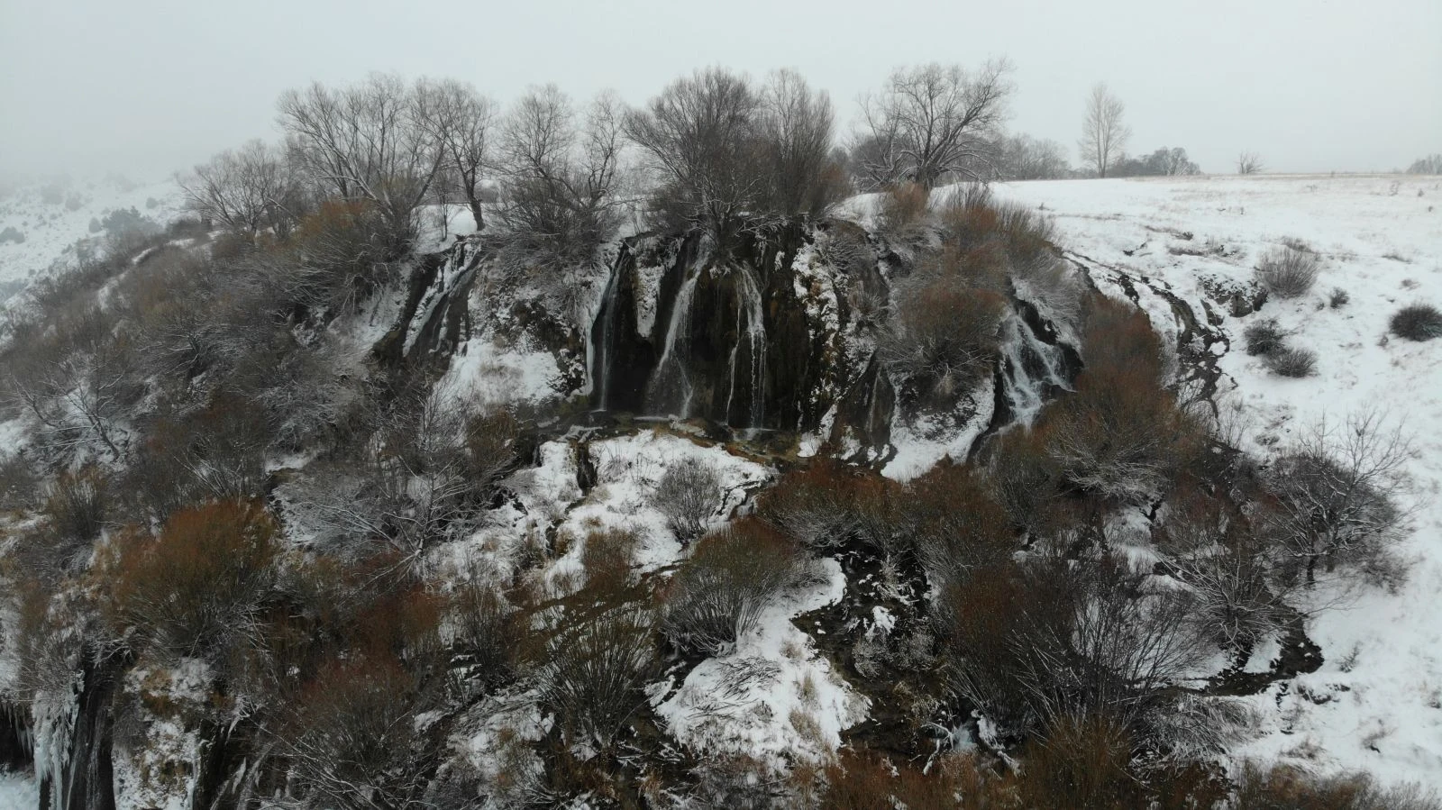 Erzincan’da kar yağışıyla birlikte buz tutan Girlevik Şelalesi de doyumsuz bir manzara oluşturdu.