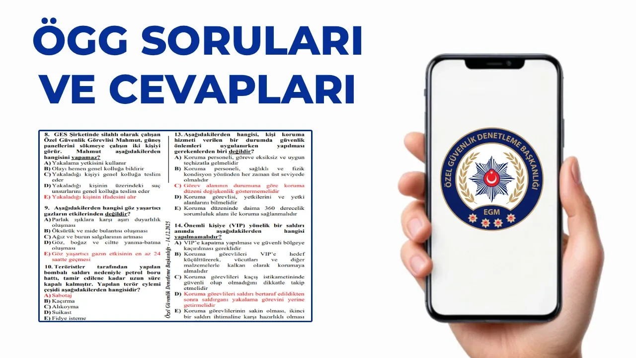 ÖGG soruları ve cevapları için heyecanlı geri sayım başladı. Emniyet Genel Müdürlüğü tarafından erişime açılan kılavuzda 119. dönem temel eğitim ve 95. yenileme eğitimi soruları ve cevap anahtarının erişime açılacağı tarih yer almıştı. ÖGG sınavlarında adayların başarılı olabilmeleri için sınavdan en az 60 puan almaları gerekiyor. ÖGG sınav sonuçları 13 Mart tarihinde erişime açılacak. Adaylar ise cevap anahtarıyla beraber önceden puan hesaplaması yapabilecek. ÖGG soruları ve cevap anahtarı duyurulduktan sonra adaylar için cevaplara itiraz süreci başlayacak. ÖGG soruları ve cevapları basılı veya mail olarak adaylara duyurulmayacak. ÖGG soruları ve cevap kitapçığı PDF şeklinde yayımlanacak. Peki ÖGG soruları ve cevap anahtarı 2026 açıklandı mı? İşte, cevapların erişime açılacağı tarih…