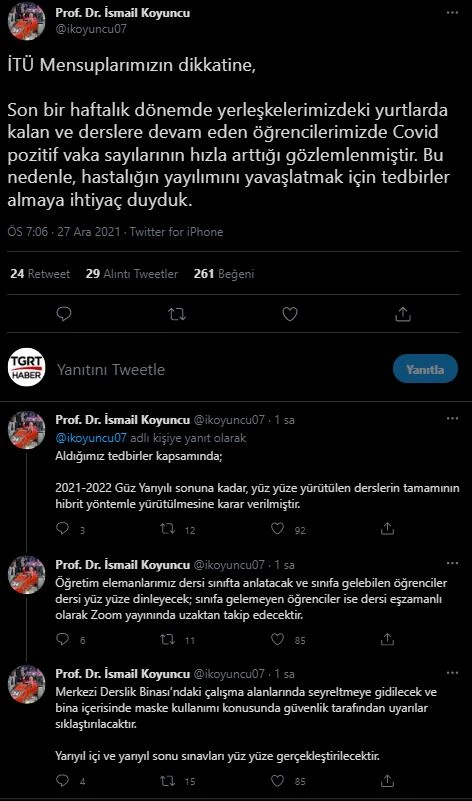 Son dakika haberi: Türkiye’de günlük koronavirüs vakasının 26 bini geçmesinin ardından İstanbul Teknik Üniversitesi yeni tedbirler aldığını duyurdu. Rektör Prof. Dr. İsmail Koyuncu sosyal medya hesabından yaptığı açıklamada yeni tedbirleri açıklarken kampüste ve yurtlarda artan vakalara dikkat çekti.