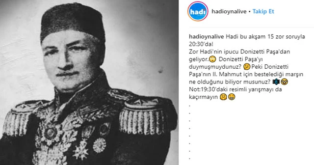 10 Ekim Hadi ipucu yayınlandı. Bu akşam saatlerinde sorulacak olan soru Donizetti Paşa'dan geliyor. İşte 10 Ekim Hadi ipucu sorusu.