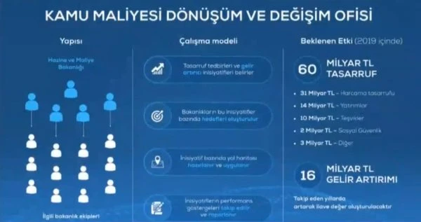 Buna göre kamuda 60 milyar liralık tasarruf yapılacak. Ayrıca 16 milyar liralık da gelir artırımı sağlacak.