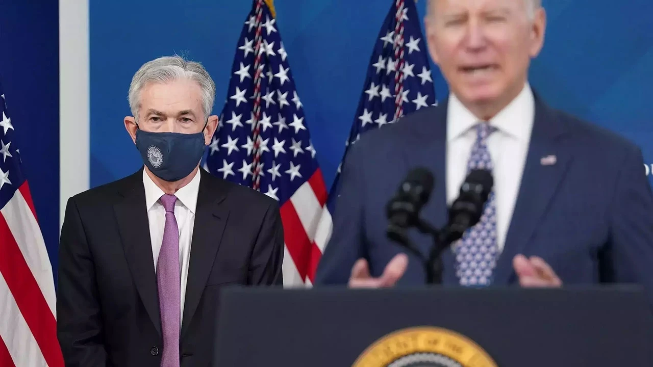 ABD Başkanı Joe Biden (önde) ve Fed Başkanı Jerome Powell (arkada)