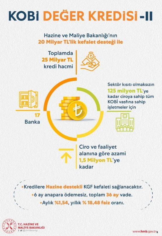 Albayrak, Twitter hesabından yaptığı paylaşımda, geçen hafta yeni bir KOBİ paketi açıklayacakları yönündeki sözlerini anımsatarak, "Geçtiğimiz hafta müjdeyi vermiştik. Bugünden itibaren KOBİ'lerimiz için KOBİ Değer Kredisi-2'yi devreye alıyoruz." ifadesini kullandı.
