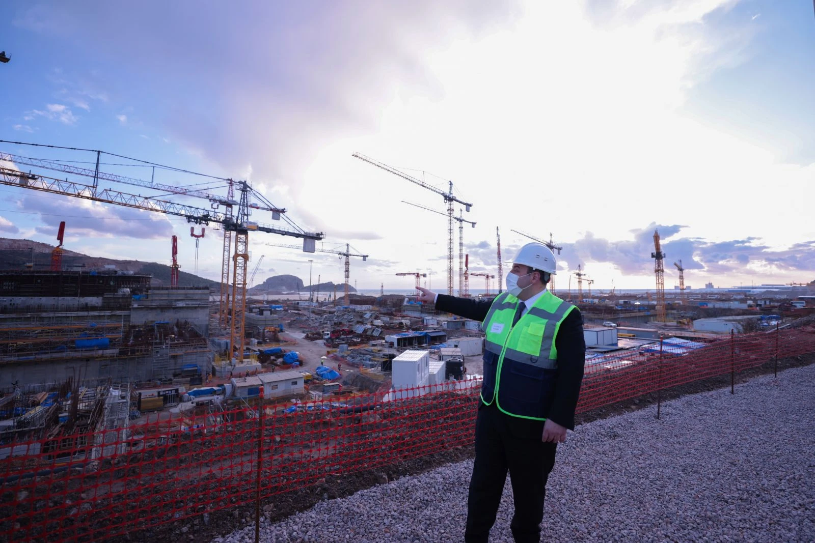 Bakan Varank, açıklamalarının ardından beraberindekilerle birlikte Akkuyu NGS inşaat sahasını gezerek, incelemelerde bulundu.