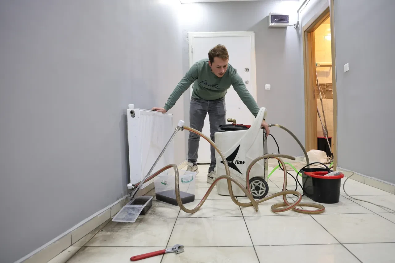 İşlem yaklaşık olarak 40 dakika sürüyor. Evlerde işlemi banyodan yapıyoruz. Banyodaki peteğe, basınçlı makinayı bağlıyoruz. Oradan tüm peteklere tek tek suyu veriyoruz. Tüm petekleri tek tek temizliyoruz. Ondan sonra aynı şekilde kombiyi, kombinin filtrelerini temizliyoruz. Yani herhangi bir el kirletme olayı, petek sökme olayı olmadan tüm petekleri tek tek, en verimli şekilde temizliyoruz. Kış sezonu olduğu için yoğunluk var" diye konuştu.