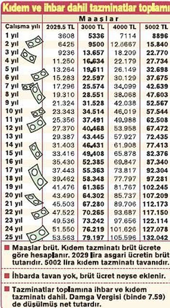 Tazminat tavanı da aynı oranda yani 270 lira artarak 4 bin 732 liradan 5 bin 2 liraya çıktı. 10 bin lira maaş da olsa kıdem 5 bin 2 lira olacak. Artış tutarı küçük gibi görünse de yıllarca aynı işyerinde çalışanlar için büyük bir avantaj ortaya çıkıyor. Bir çalışanın kıdem tazminatı alabilmesi için kendi isteği dışında işten ayrılması gerekiyor. Bunun istisnaları da var.