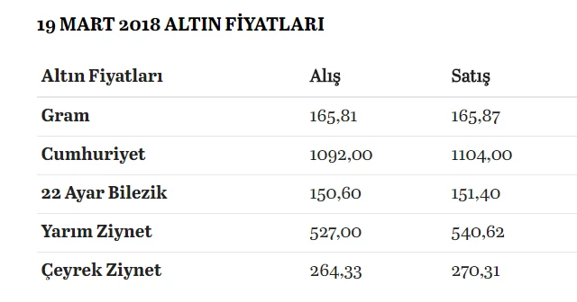 Çeyrek altın ne kadar oldu? Güncel altın fiyatları ne kadar? Geçen haftanın son işlem gününde dolar kurundaki yükselişlerden bulduğu destekle 166,4 lira ile tüm zamanların zirvesini gören altının gram fiyatı, günü yüzde 0,4 artışla 165,5 liradan tamamladı. Gram altın, bugüne yükselişle başlamasının ardından saat 10.10 itibarıyla yüzde 0,04 artışla 165,7 liradan işlem görüyor. Aynı dakikalarda Kapalıçarşı'da çeyrek altın 272 lira, Cumhuriyet altını da 1.109 liradan satılıyor. Küresel piyasalarda doların değer kazanmasının etkisiyle düşüş eğilimini bugüne taşıyan altının ons fiyatı şu dakikalarda 1.309,7 dolardan işlem görüyor.