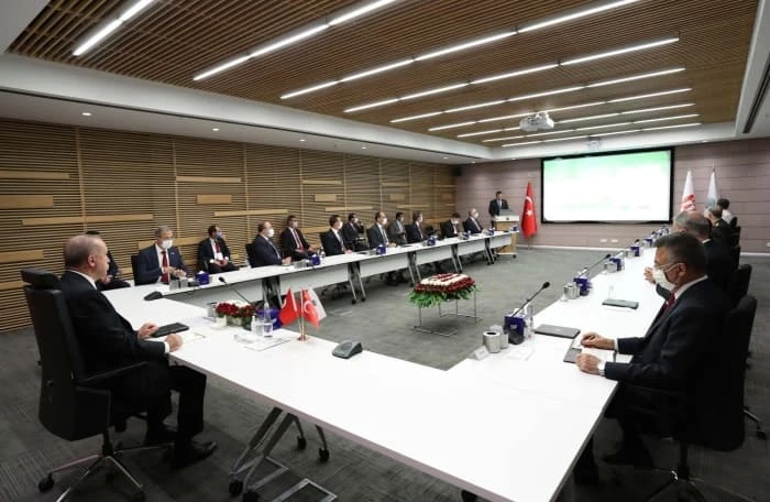 Erdoğan, daha sonra yerleşke içinde düzenlenen toplantıda yetkililerden yürütülen projeler hakkında bilgi aldı, Uzay Sistemleri ve İleri Teknolojiler Araştırma Merkezi'ni inceledi. Programda Cumhurbaşkanı Yardımcısı Fuat Oktay, Mili Savunma Bakanı Hulusi Akar, Sanayi ve Teknoloji Bakanı Mustafa Varank, Cumhurbaşkanlığı Sözcüsü İbrahim Kalın, Savunma Sanayii Başkanı İsmail Demir, Genelkurmay Başkanı Orgeneral Yaşar Güler ve kuvvet komutanları da hazır bulundu.