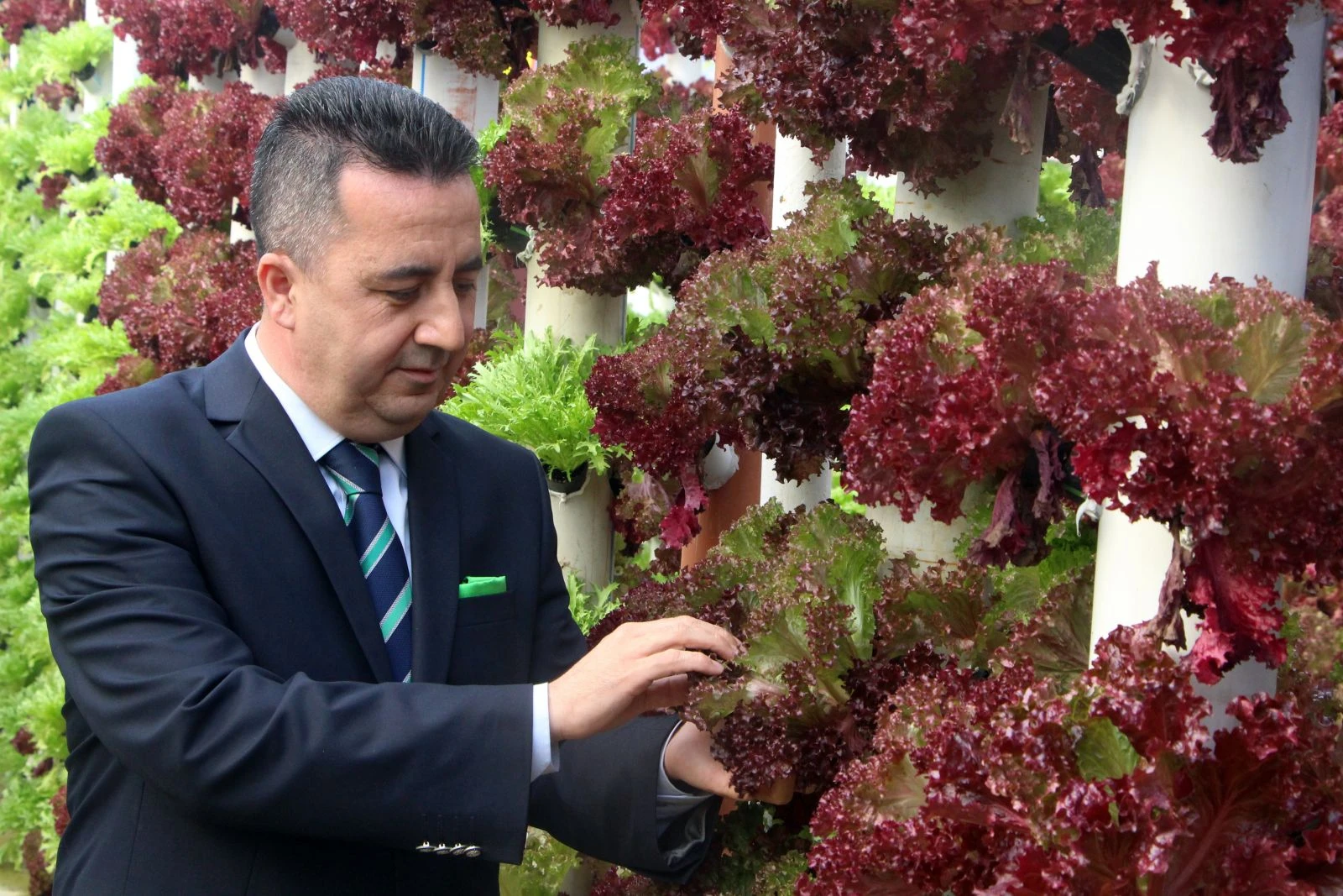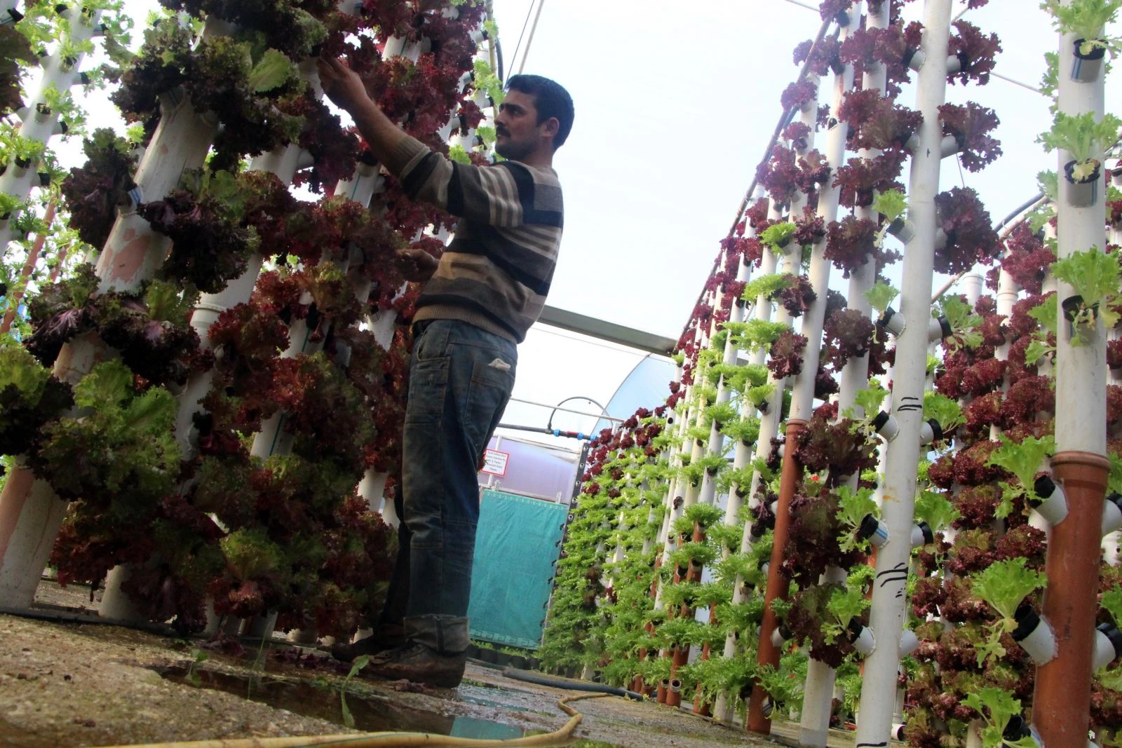 Aksu ilçesine bağlı Kurşunlu Mahallesi’nde 20 yıldır üreticilik yapan Serkan Üzer, tarım işçiliğini kolaylaştırmak için modern tarım teknikleri araştırmaya başladı. 2 yıllık araştırma sürecinden sonra topraklı serasının yanında bir dekar alanda dikey topraksız marul yetiştiren Üzer, yılda 9 dönem ürün alabiliyor. Her döneminde 4 bine yakın ürün alan Üzer, servetine servet katıyor. Örtü altında yaptığı 1 dekarlık alandan aldığı dikey marul hasadını normal topraklı üretimde 5 dekardan alınacağını kaydeden Üzer, bu şekilde hem üretimin arttığına hem de üretim süresinin kısaldığına dikkat çekti.