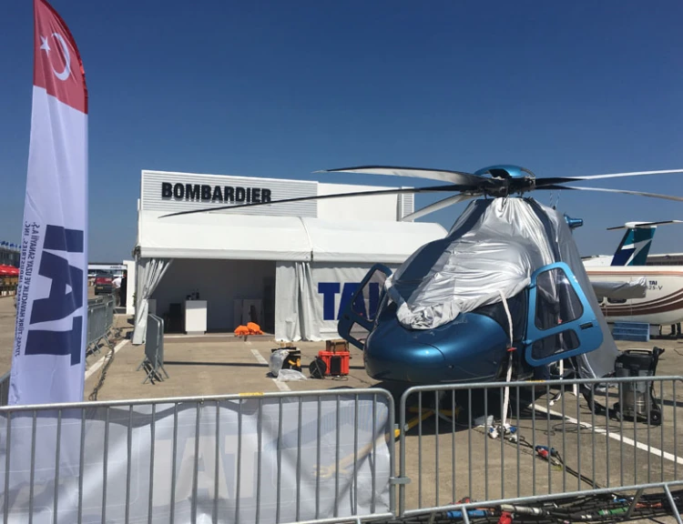 Fuarda, TAI tarafından tasarlanıp imal edilen Hürkuş eğitim uçağı gösteri uçuşu gerçekleştirilecek. Geçtiğimiz hafta Ankara’dan yola çıkan ekip, Paris’e ulaştıktan sonra test uçuşlarını gerçekleştirdi. İkinci Hürkuş uçağı ise kanat altında taşıdığı füze ve mühimmatlar ile statik alanda sergileniyor. Hürkuş’un yanı sıra dikkat çeken bir başka ürün, gelecek yıl gökyüzü ile tanışacak T625 helikopteri. 12 koltuk kapasiteli, 6 ton ağırlığına sahip helikopter hem sivil hem de askeri amaçlı kullanılacak.