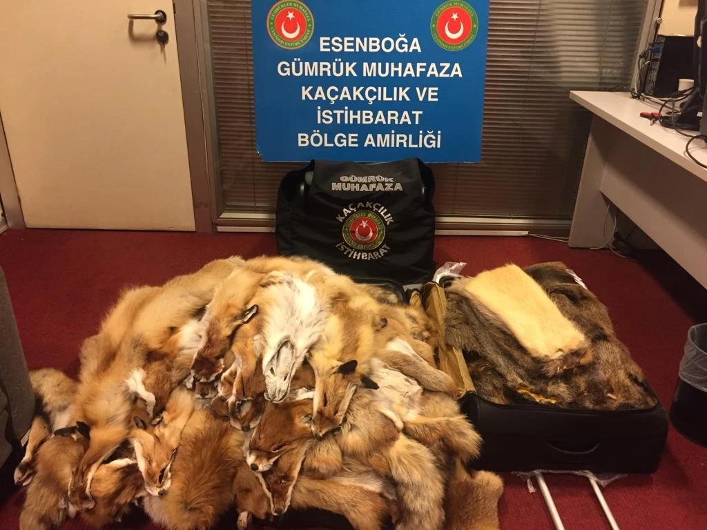 Gümrük Muhafaza ekiplerince yapılan arama neticesinde şahsa ait iki bavulda 68 adet kunduz postu ve 60 adet tilki postu olmak üzere toplam 128 adet hayvan postu ele geçirildi. Ele geçirilen postların gümrüklenmiş değerinin 350 bin Türk lirası olduğu öğrenildi.