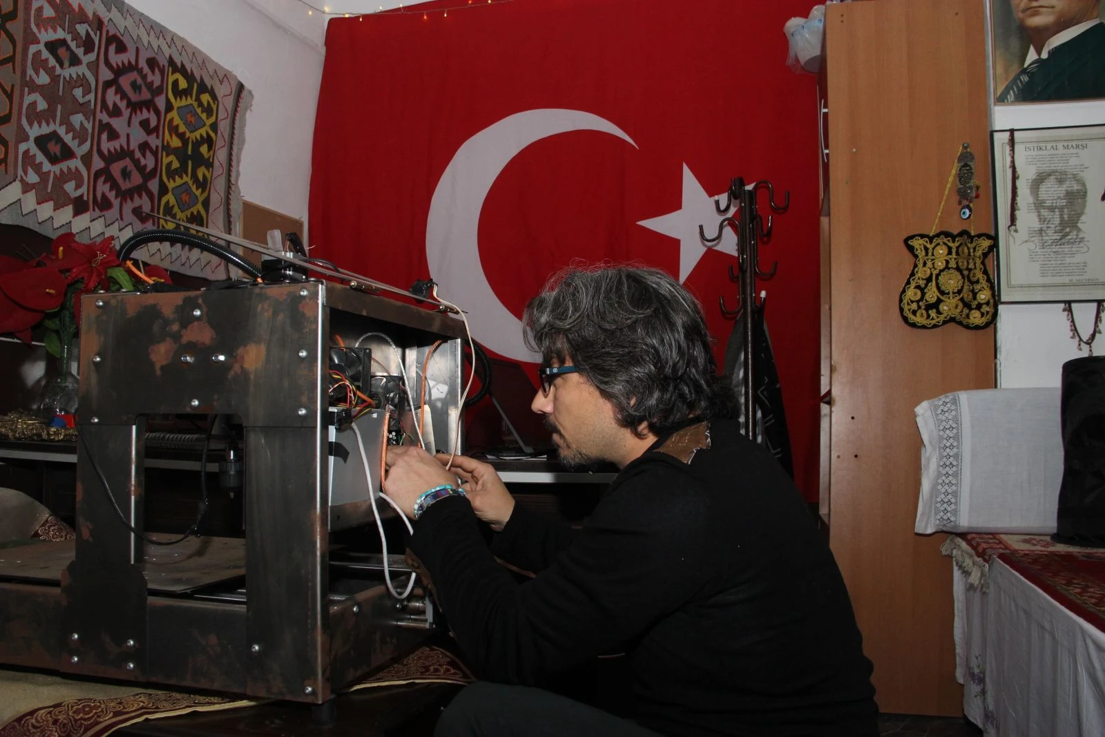 Ürettiği makinenin orta ölçekli sanayide kullanılabileceğini belirten Sarı, her türlü işi bu robot sayesinde yapabileceklerini söyledi. Sarı, “CNC makineyi biz yurt dışından bir şekilde alıyoruz ya da yapıyoruz. Fakat bunun mantığı ve ayıran özelliği kendi yazdığımız yazılıma entegre çalışıyor. Yani bunun her noktasını sistem otomatik olarak hesaplayıp verim tablosuna yazabiliyor. Ara yüz de kendimizin. Ara yüzü biz oluşturduk. Bir JPEG dosyası dahil okuyabiliyor. Çekilmiş bir fotoğrafı okuyabiliyor. Türkiye’de buna benzer aktif cihazlar var, fakat biz bunun çoğunu dışarıdan alıyoruz. Ünitelerini de dışarıdan alıyoruz. Bu projeleri dosya dosya götürüp destek almaya çalıştım. Fakat alaylı takımı olduğumdan yani üniversite bitirmediğim için bir netice alamadım. Hep ‘Ya yanında bir mühendis olsun ya da kendi başına bu işe girme’ şeklinde dönüşler aldım. Üniversite ya da kuruluşlardan da destek alamadım. Ankara’da, İstanbul’da görüşmeler aldım. TÜBİTAK’a başvurdum ama önüme üniversite mezunu olma şartı çıktı. Buna da başvuramadım. Çalıştığım yerde biraz şartları zorlayarak bunu ürettim. Başvurduğum yerlerden de bana hiçbir dönüş olmadı. Kardeş Payı dizisi gibi oldu. Kullanılan araçlar belki farklı ama diziyle aynı sonuç oldu. Bu da benim için bir hüsran oldu” dedi.