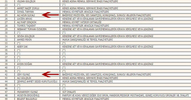 TV8'i satın aldıktan sonra tüm dikkatleri üzerine çeken Acun Ilıcalı listede 7 milyon 608 bin 343,62 lira vergi tutarı ile 25. sırada yer alırken, ünlü şovmen Cem Yılmaz da 5 milyon 222 bin 250,03 lira vergi tutarı ile 42. sırada kendine yer buldu.