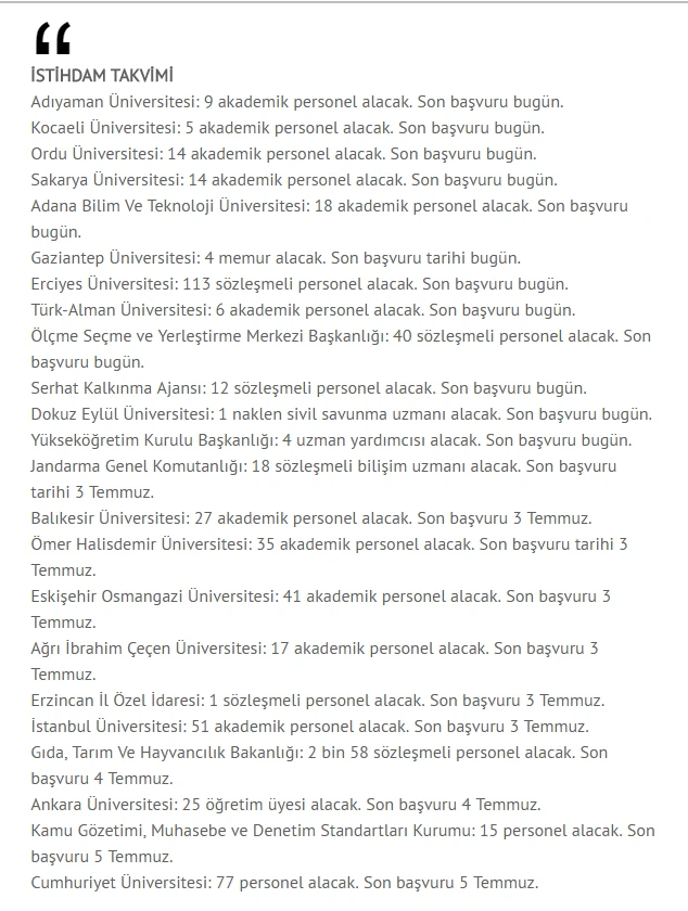 Cumhurbaşkanı Recep Tayyip Erdoğan'ın başlattığı milli istihdam seferberliği kapsamında yıl sonu için amaçlanan 2 milyon iş hedefine adım adım yaklaşılıyor. Kamu kurumları her gün yeni işe alım ilanları yayınlıyor. Devlet Personel Başkanlığı'nın sitesinde şu an 26 bin 947 açık iş ilanı bulunuyor.
