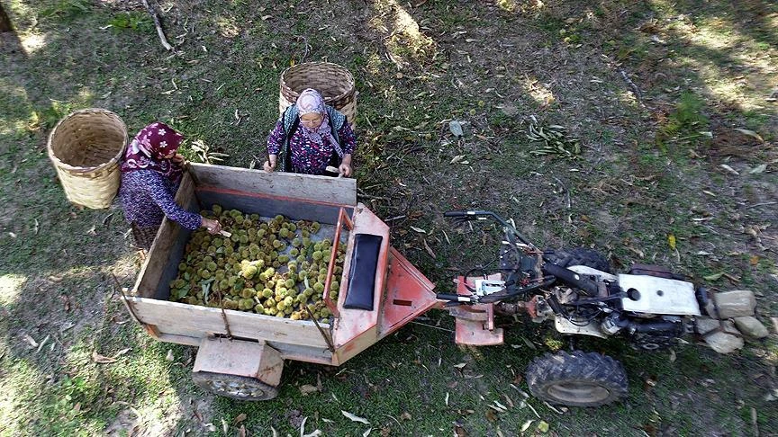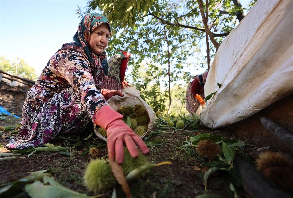 Ağaçlardaki kestanelerin tamamının yere düşürülmesinin ardından devreye kadınlar giriyor. Dışı dikenli olduğu için eldiven giyen kadınlar, bazı yerleri dik olan dağ yamaçlarında kestaneleri tek tek topluyor.