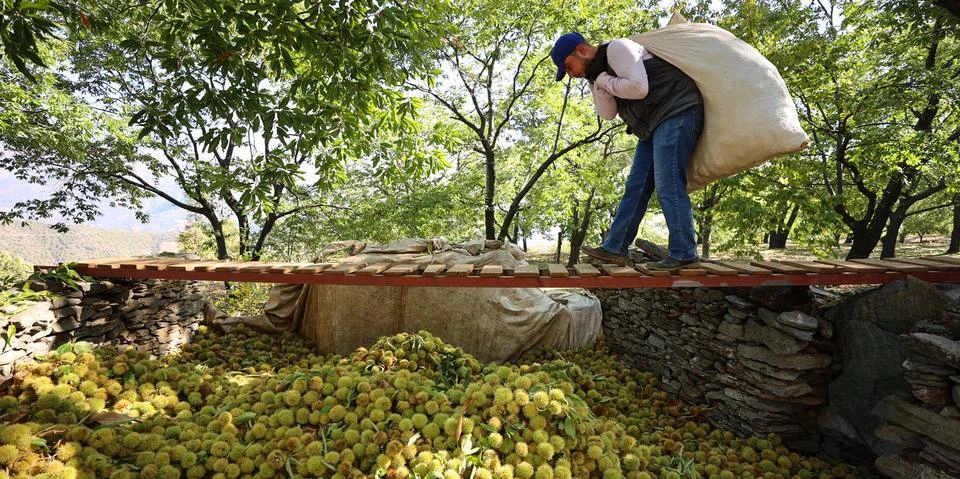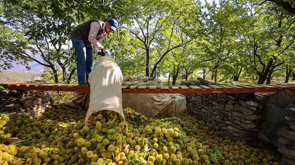 "Hasatların en zoru ve ağırı kestanedir. Ağaçtan düşüp beli kırılanlar, dikenli kestanenin gözüne gelmesinden dolayı kör olanlar bile var. Hatta ölümlere kadar yol açan bir mahsul. Kuraklıktan etkilendik ama son zamanlardaki yağıştan dolayı toparladık. Rekolte bir miktar düşük ama kalitesinde herhangi bir sorun yok."