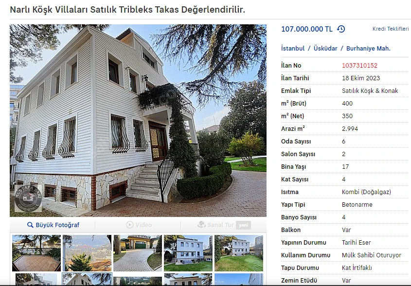 Lüks mülkler de takas kabul eden gayrimenkullerden. Üsküdar’da 101 milyon TL değerinde Boğaz manzaralı tripleks köşk, İstanbul Anadolu Yakası veya Bodrum’da gayrimenkul veya lüks araçla takasa açık durumda.