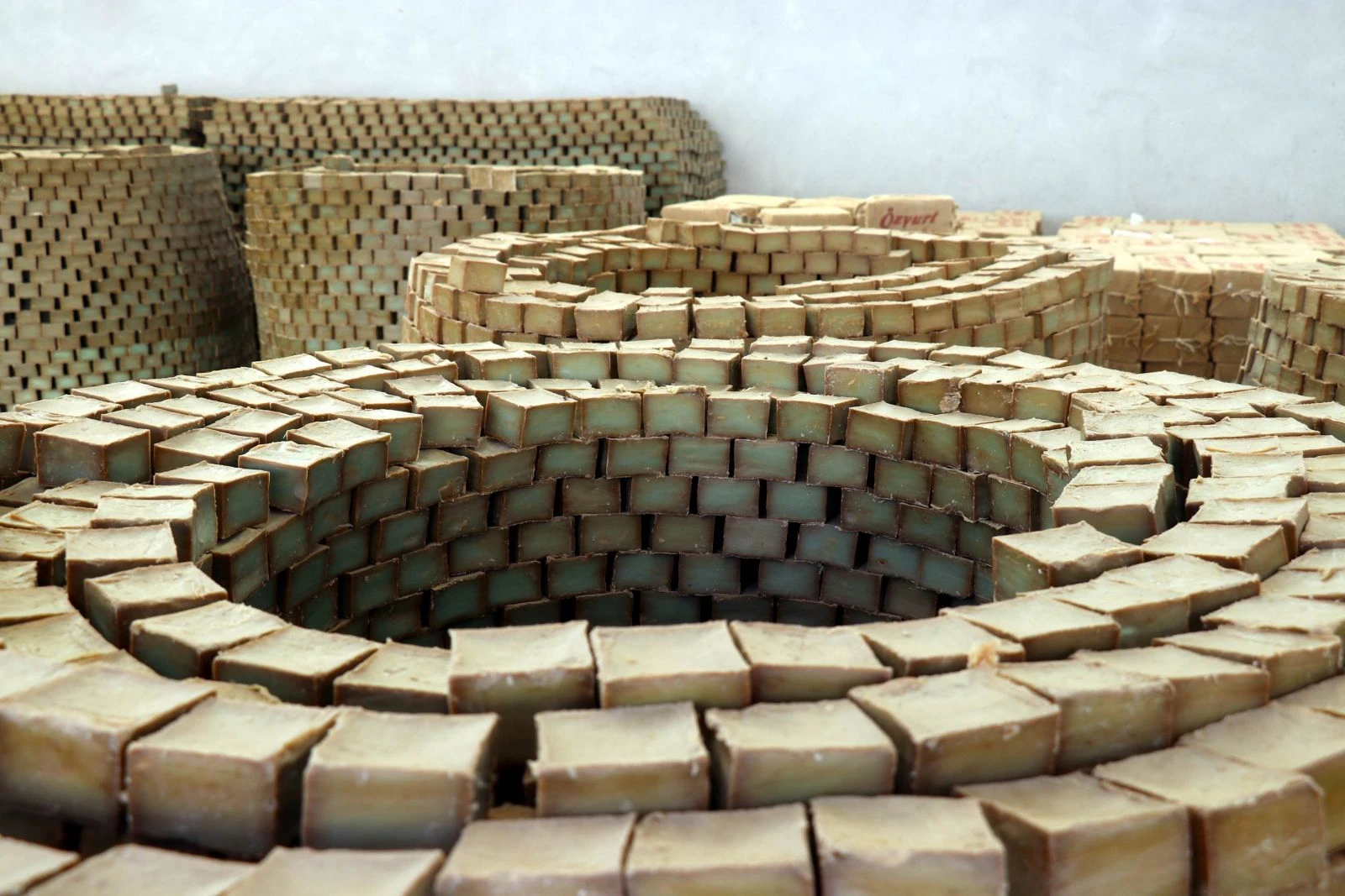 Sabun üretimi hakkında da bilgi veren Özyurt, pirina adı verilen yağı kazanlara koyup kostik ilave ederek kaynattıklarını ve sabun elde ettiklerini anlatarak, "Pirina yağı, 2 gün boyunca kaynatılarak pişirilir. Kaynatılan karışım daha sonra serim alanlarına serilerek soğumaya bırakılır. Soğuyan sabun özel aletlerle kesilir ve damgalanır. Kesilen sabunlar, özenle kule şeklinde örülerek kurumaya bırakılır. Kuruyan sabunlar paketlendikten sonra satışa hazır hale getirilir” diye konuştu.