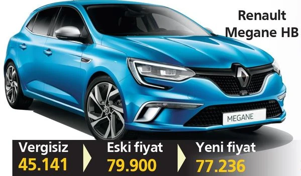 Diğer yandan 30 Aralık’ta aynı aracı alanlar 2 bin 714 lira daha fazla vergi ödemiş olarak bir nevi acele ettiği için cezalandırılmış olacak. Otomobilin toplam yani vergili fiyatı 81 bin 420 liradan 78 bin 706 liraya inecek. Örneğin Fiat Egea Easy’de vergisiz 45 bin 423 lira olan fiyat 30 Aralık’ta vergi ile birlikte 80 bin 400 liraya çıkarken bugün fiyat 77 bin 720 lira civarına inecek. Fiyatı 40 bin liranın üstüne çıktığı için yüzde 50 ile vergilenen Renault Megane HB’de de fiyat 79 bin 900 liradan 77 bin 236 lira düzeyine düşecek.