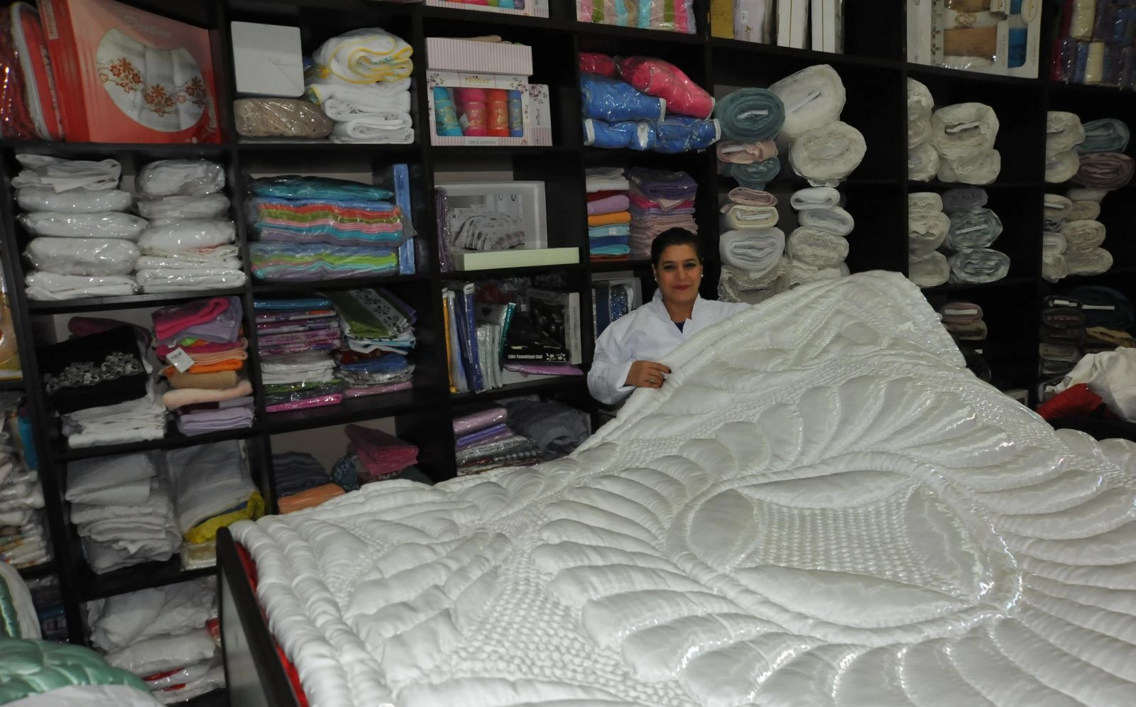 Aliye Fakıoğlu, el işi yorganlara eskisi gibi talep kalmayınca "zaman bize uymuyor, biz zamana uyalım" diyerek yurt dışından makineler getirdiklerine dikkati çekerek, şunları anlattı: