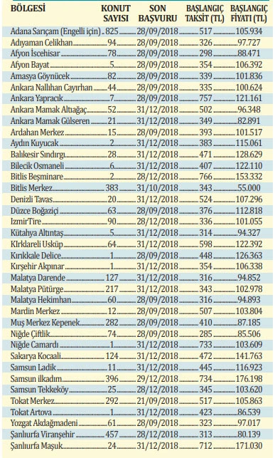 Türkiye'nin farklı noktalarında konut inşasına devam eden TOKi, bu yıl özellikle dar gelir grubuna odaklandı. Birçok ilde konutlarını satışa çıkaran TOKİ, 185 liradan başlayan taksitlerle ev satıyor. Ev fiyatları 55 bin 681 liradan başlıyor. Satışa sunulan konut adedi 4 bin 52’yi buluyor. Emekli, alt gelir grubu dahil tüm kesimlere hitap eden konutlar 1+1, 2+1, 3+1 olarak satışa sunuluyor. Satışa sunulan konutlar için TOKİ’nin yetkilendirdiği kamu bankalarına başvuru yapmak gerekiyor.