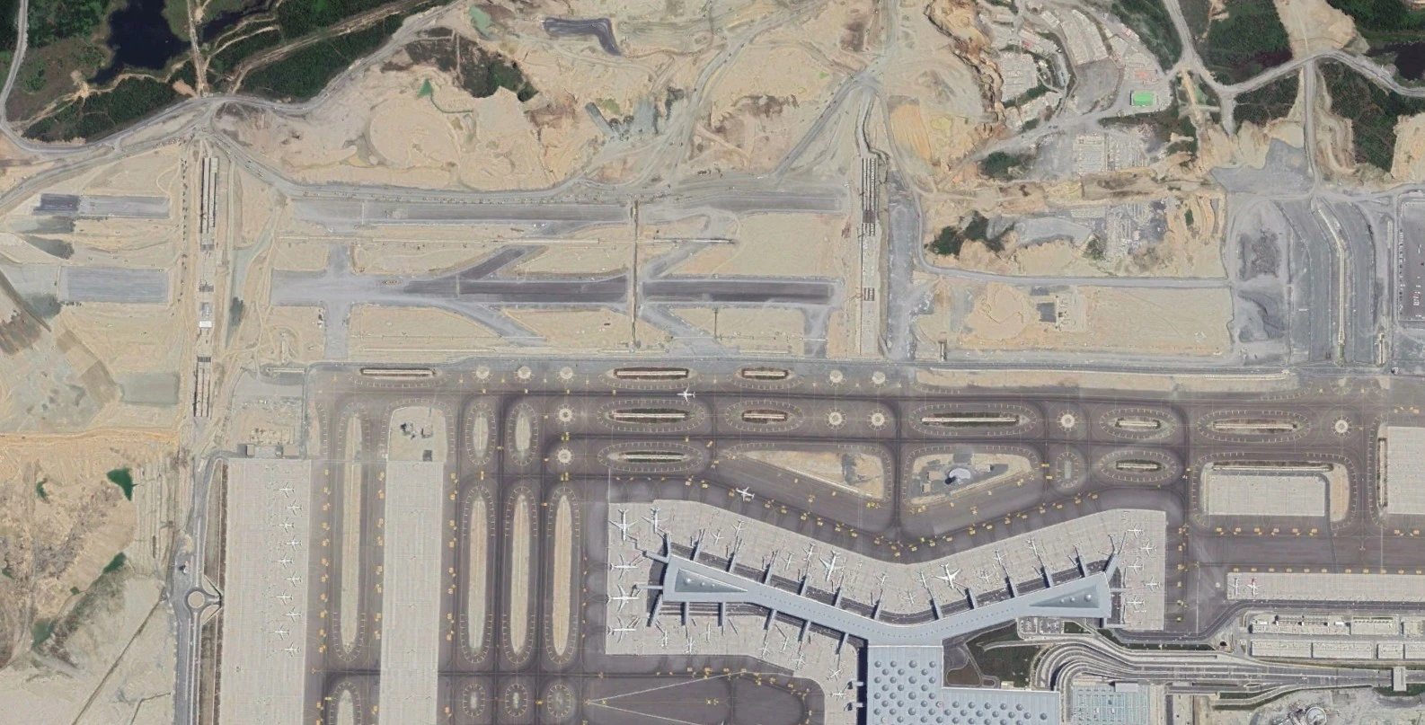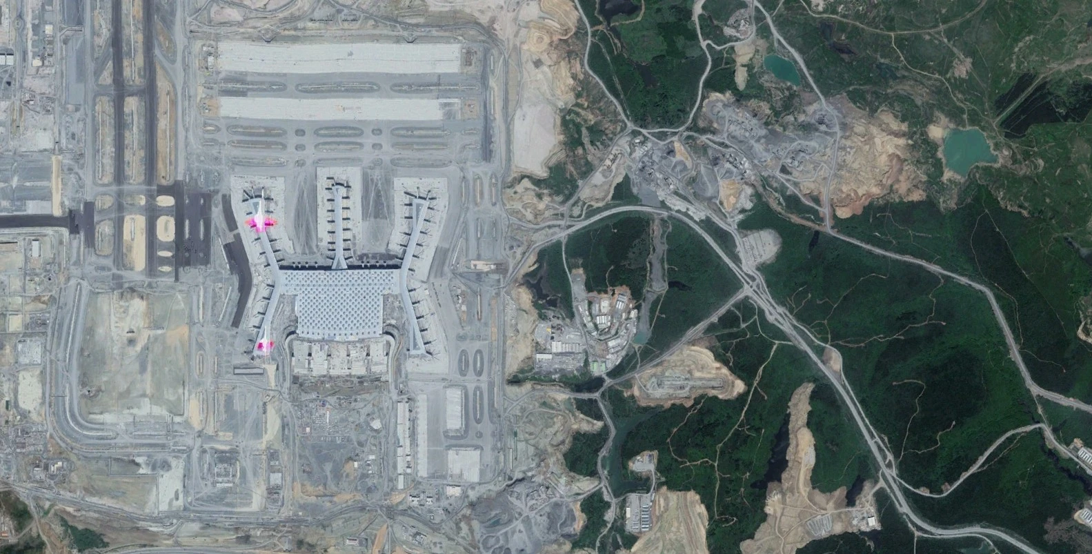 Kaydedilen uydu görüntülerinde pistin üzerinde yüzlerce kamyonun çalıştığı gözüküyor. 76.5 milyon metrekarelik alan üzerinde inşaat çalışmaları yıllar içindeki değişimi uydu çekilen fotoğrafları ile gözler önüne serildi. Fotoğraflarda inşaatın başladığı günden bu güne gelinen aşamalar net bir şekilde görülüyor.