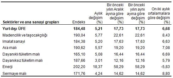 Sanayinin iki sektörünün bir önceki aya göre değişimleri; madencilik ve taşocakçılığı sektöründe yüzde 5,77, imalat sanayi sektöründe ise yüzde 5,20 artış olarak gerçekleşti.
