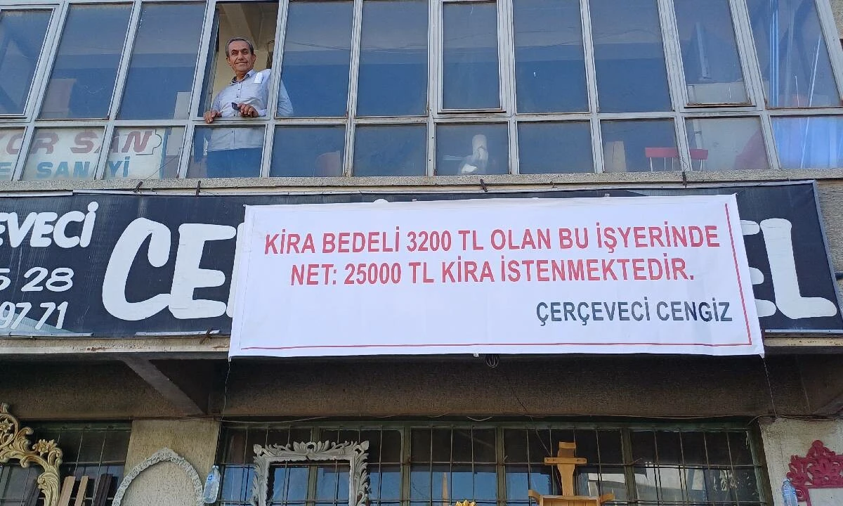 Bir anda 25 bin TL kirayı karşılamasının mümkün ve adil olmadığını belirten kiracı Cengiz Örsel sık karşılaşılan kavga gürültü yerine farklı bir yol izledi. Dükkân penceresinden “kira bedeli 3 bin 200 lira olan bu iş yerinde net 25 bin lira kira istenmektedir” yazılı pankart asarak duruma isyan etti.