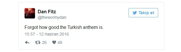 Euro 2016'da mücadele eden Türk Milli Takımı'nın Milli Marşı'nın neler hissettirdikleri yabancı futbolseverlere soruldu. İşte yabancı futbolseverlerin milli marşımızla ilgili değerlendirmelerinden bazıları: