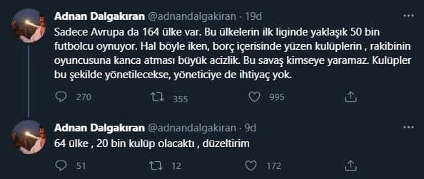 Siyah-beyazlı kulübün yöneticisi, yaptığı paylaşımda "Sadece Avrupa'da 64 ülke var. Bu ülkelerin ilk liginde yaklaşık 50 bin futbolcu oynuyor. Hal böyleyken borç içerisinde yüzen kulüplerin, rakibinin oyuncusuna kanca atması büyük acizlik. Bu savaş kimseye yaramaz. Kulüpler bu şekilde yönetilecekse, yöneticiye de ihtiyaç yok." ifadelerini kullandı.